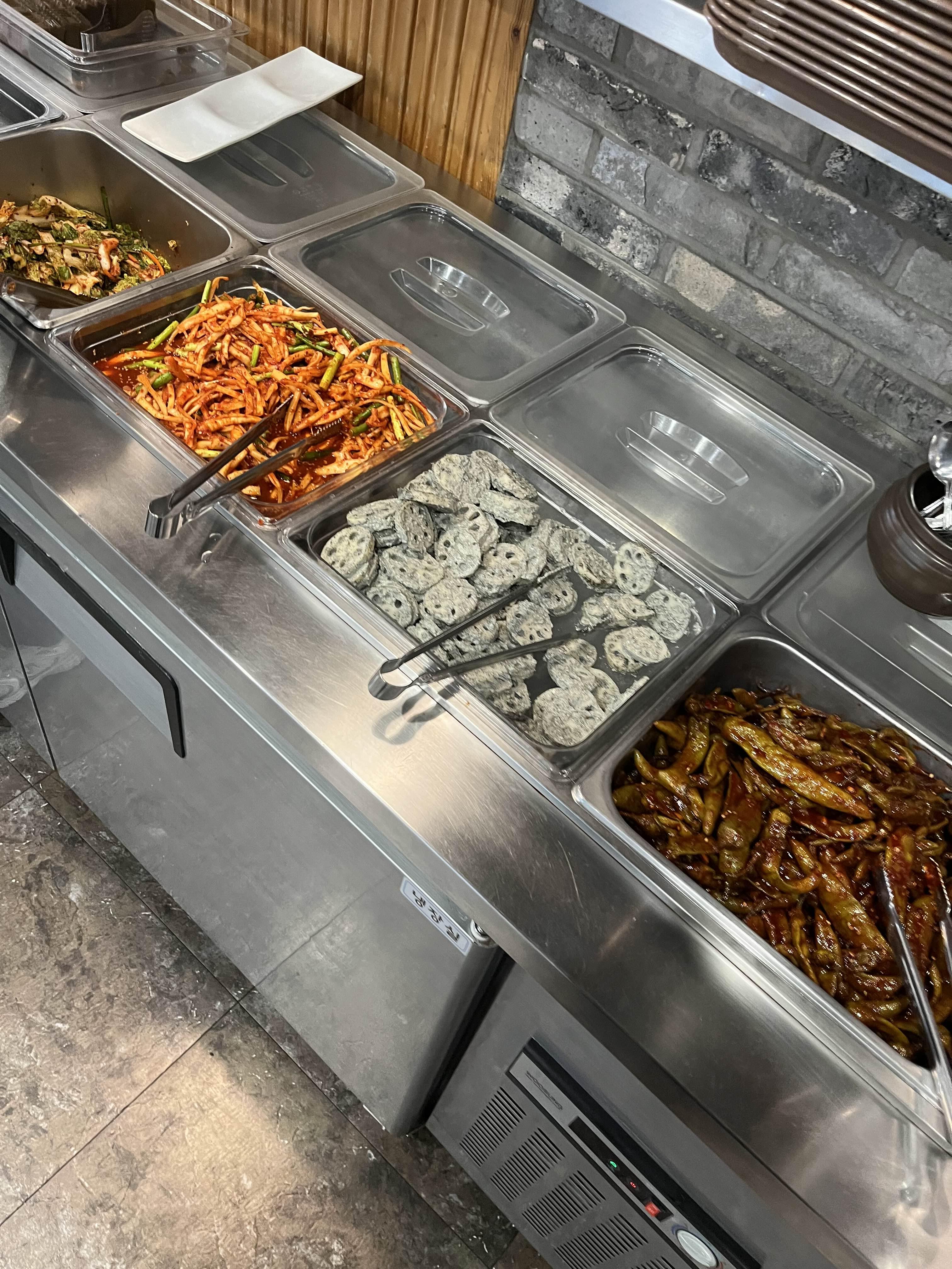 식사와 함께 제공되는 밑반찬들도 정갈하고 맛있었습니다. 간장에 절인 나물과 김치, 그리고 미역국은 찌개와 잘 어울려 전체적으로 만족스러운 식사를 만들었습니다. 이곳의 미역국은 담백하면서도 깊은 맛이 나서 찌개와 함께 먹기에 아주 좋았습니다.