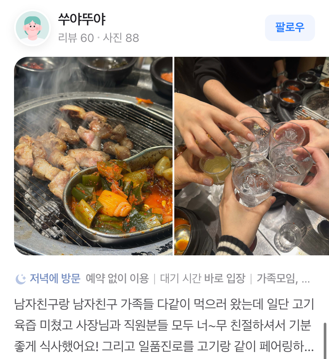 결론적으로, 원조부안집 마포직영점은 맛, 서비스, 분위기 모든 면에서 뛰어난 서울의 맛집입니다. 돼지고기 구이를 사랑하는 분이라면, 이곳을 꼭 방문해보시길 추천드립니다. 맛있는 음식과 함께 즐거운 시간을 보내실 수 있을 것입니다.