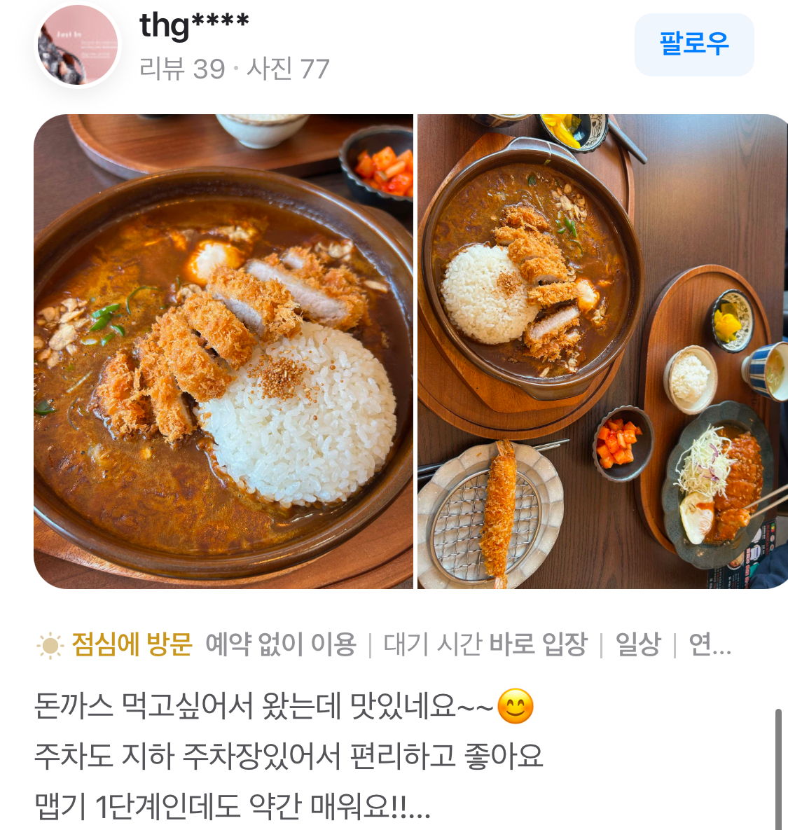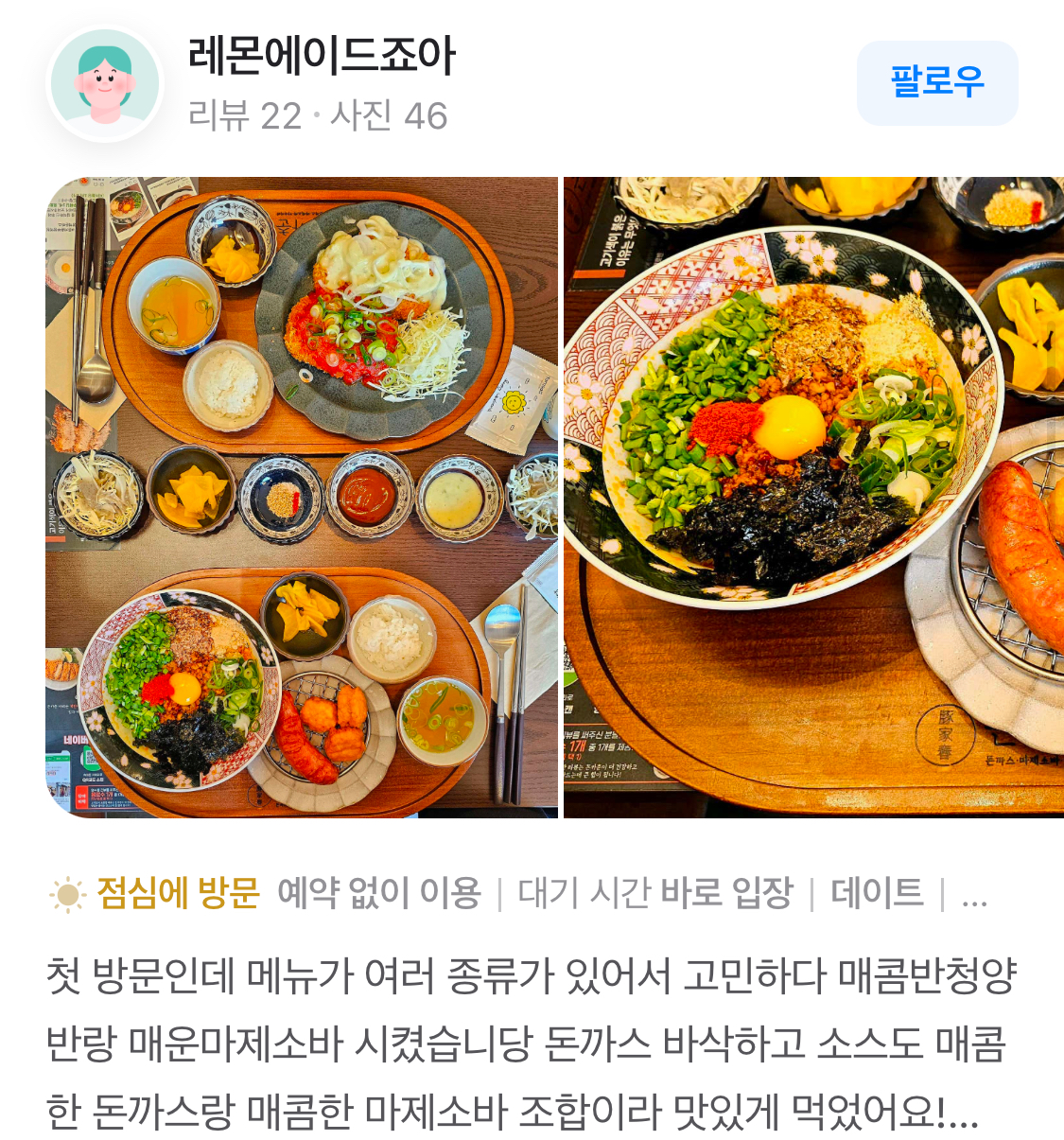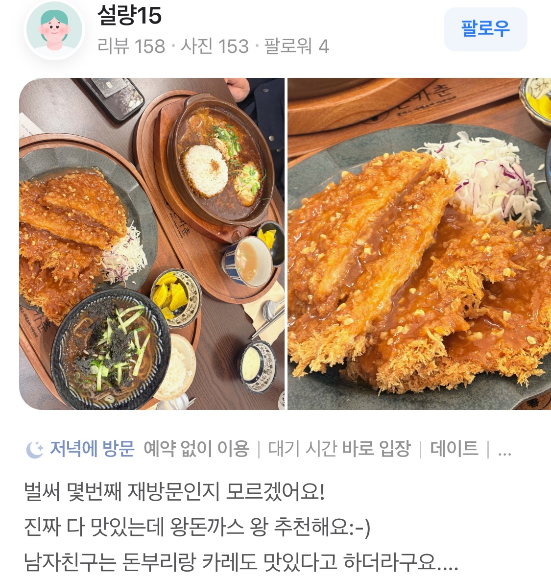 방문객들의 리뷰를 살펴보면, "음식이 맛있어요"라는 평이 가장 많이 보입니다. 많은 사람들이 이곳의 음식 맛에 감탄하며, 재료의 신선함과 친절한 서비스에 대해서도 긍정적인 반응을 보이고 있습니다. 특히, 혼밥하기 좋은 분위기와 다양한 메뉴 덕분에 혼자서도 편안하게 식사를 즐길 수 있습니다.