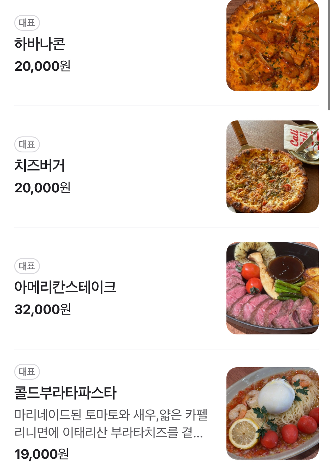 캘리캘리의 메뉴는 다양하지만, 특히 추천하고 싶은 메뉴는 다음과 같습니다.