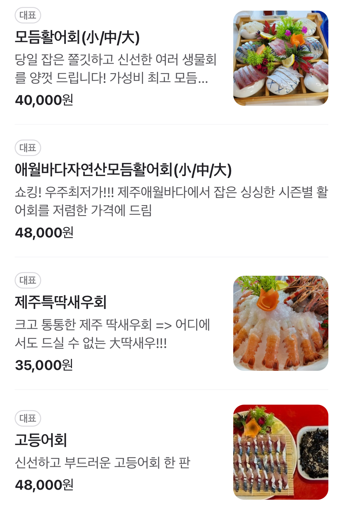 - 해물 모듬회: 신선한 해산물로 구성된 모듬회로, 다양한 해산물을 한 번에 즐길 수 있습니다.