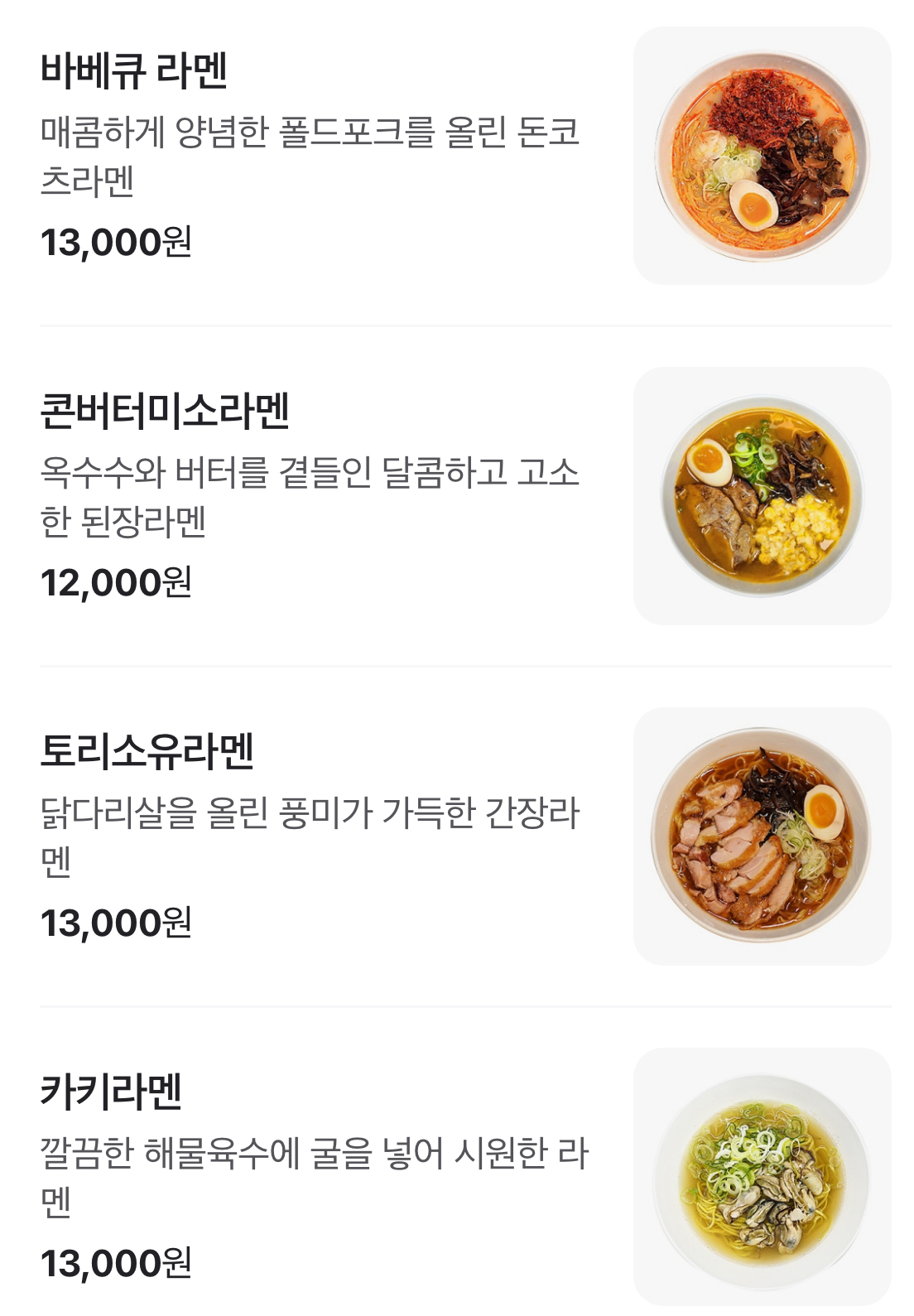 호로몬 라멘은 담아네기의 대표 메뉴 중 하나로, 진한 국물과 부드러운 고기가 조화를 이루는 맛이 일품입니다. 국물은 깊고 풍부한 맛을 자랑하며, 면은 쫄깃하고 탄력 있어 식감이 좋습니다. 많은 손님들이 "음식이 맛있어요"라고 극찬하는 이유가 바로 이 호로몬 라멘입니다.