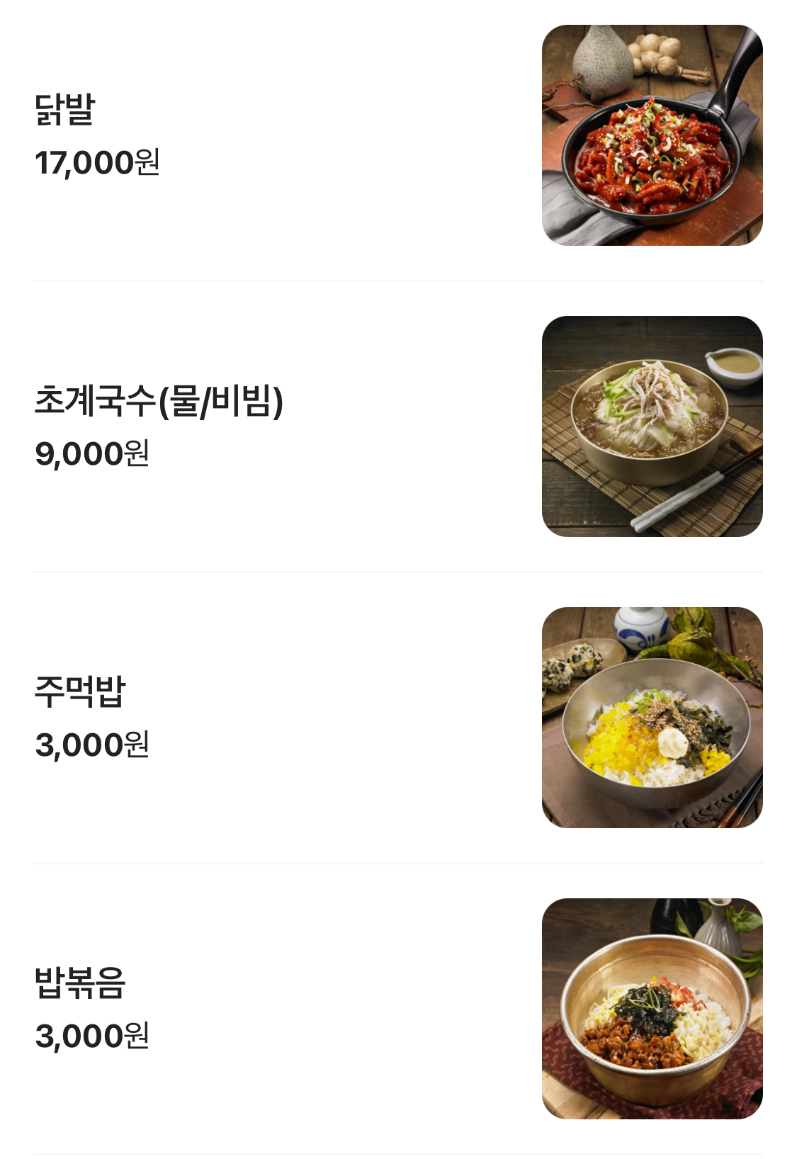| 공기밥 | 따뜻한 공기밥 | 1,000원 |