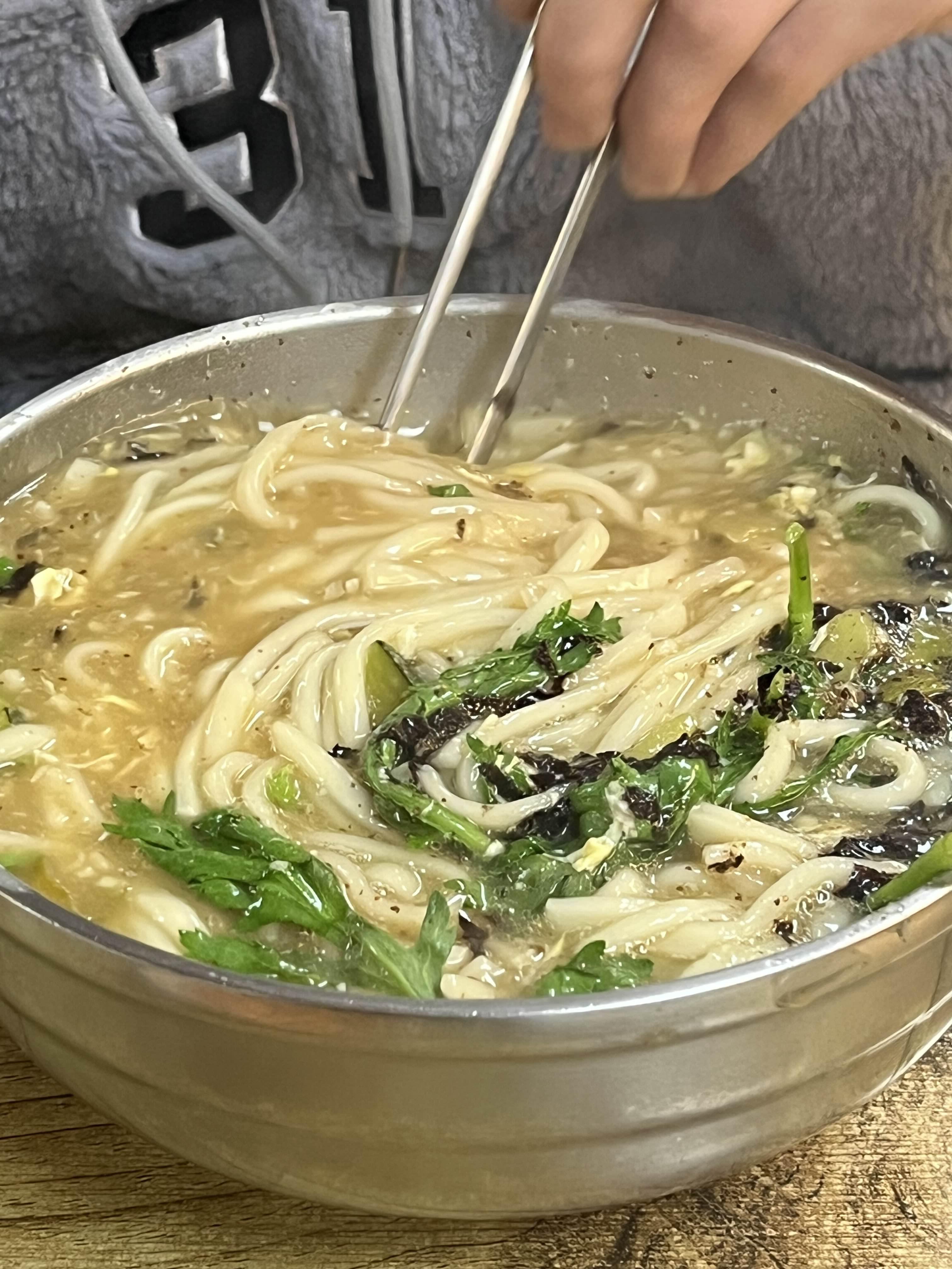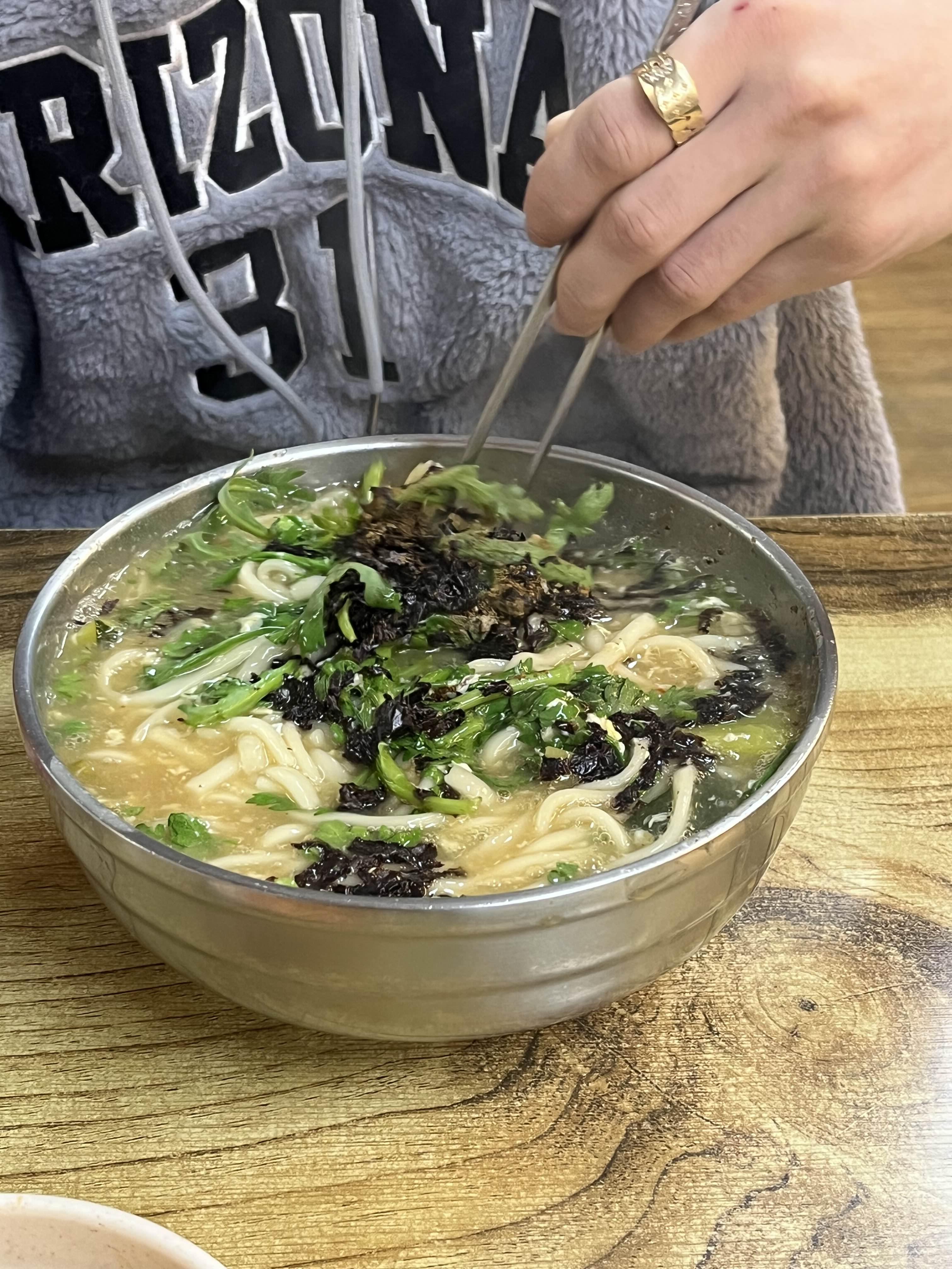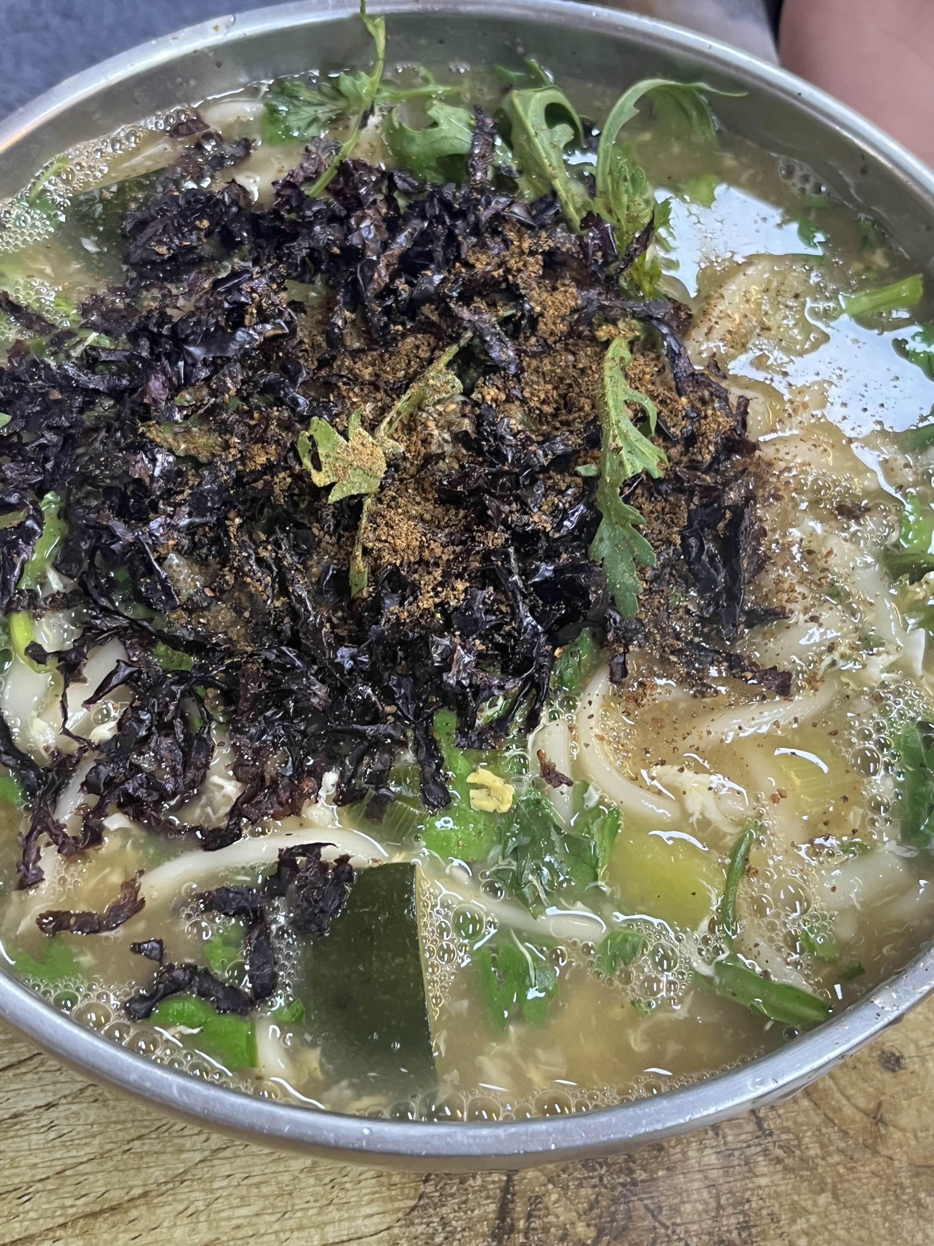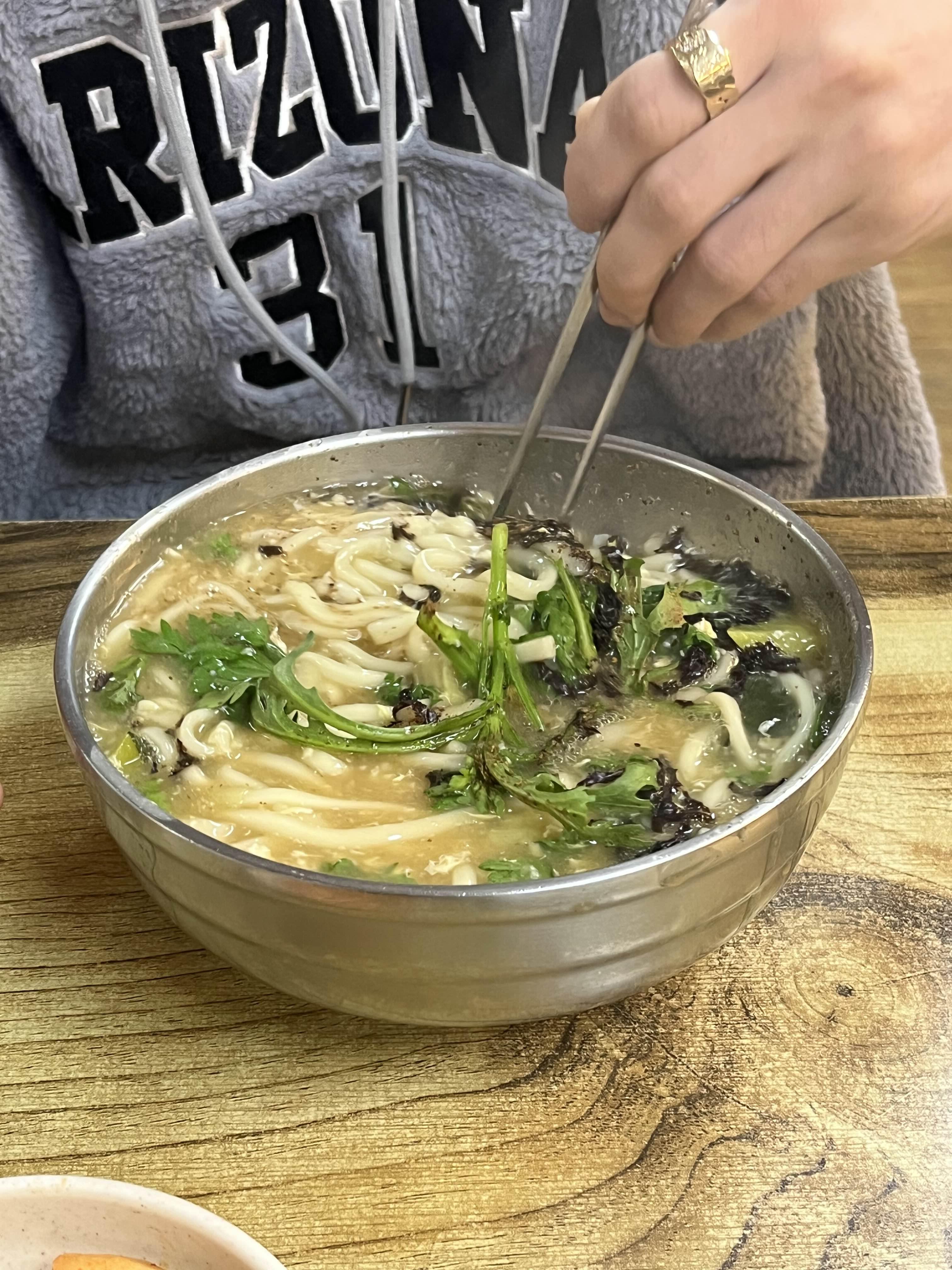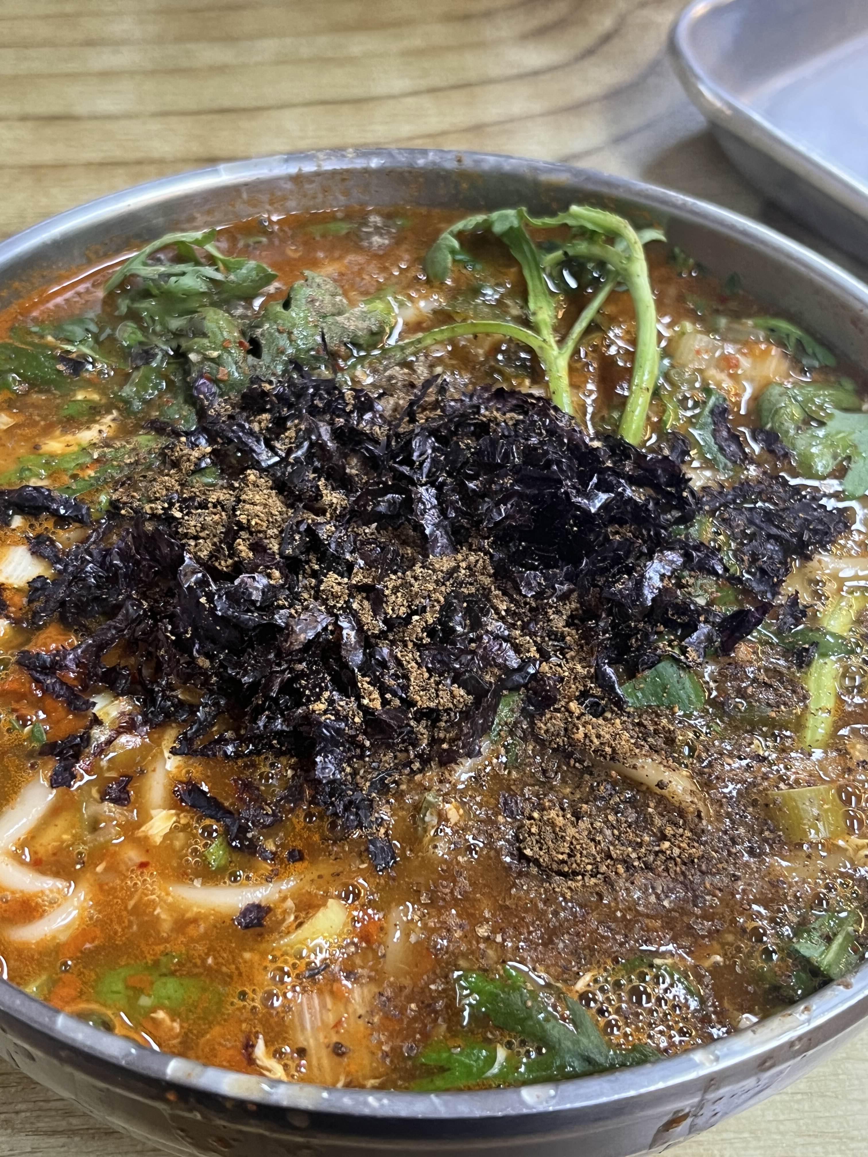 칼칼한 국물 속에 쑥갓 듬뿍
