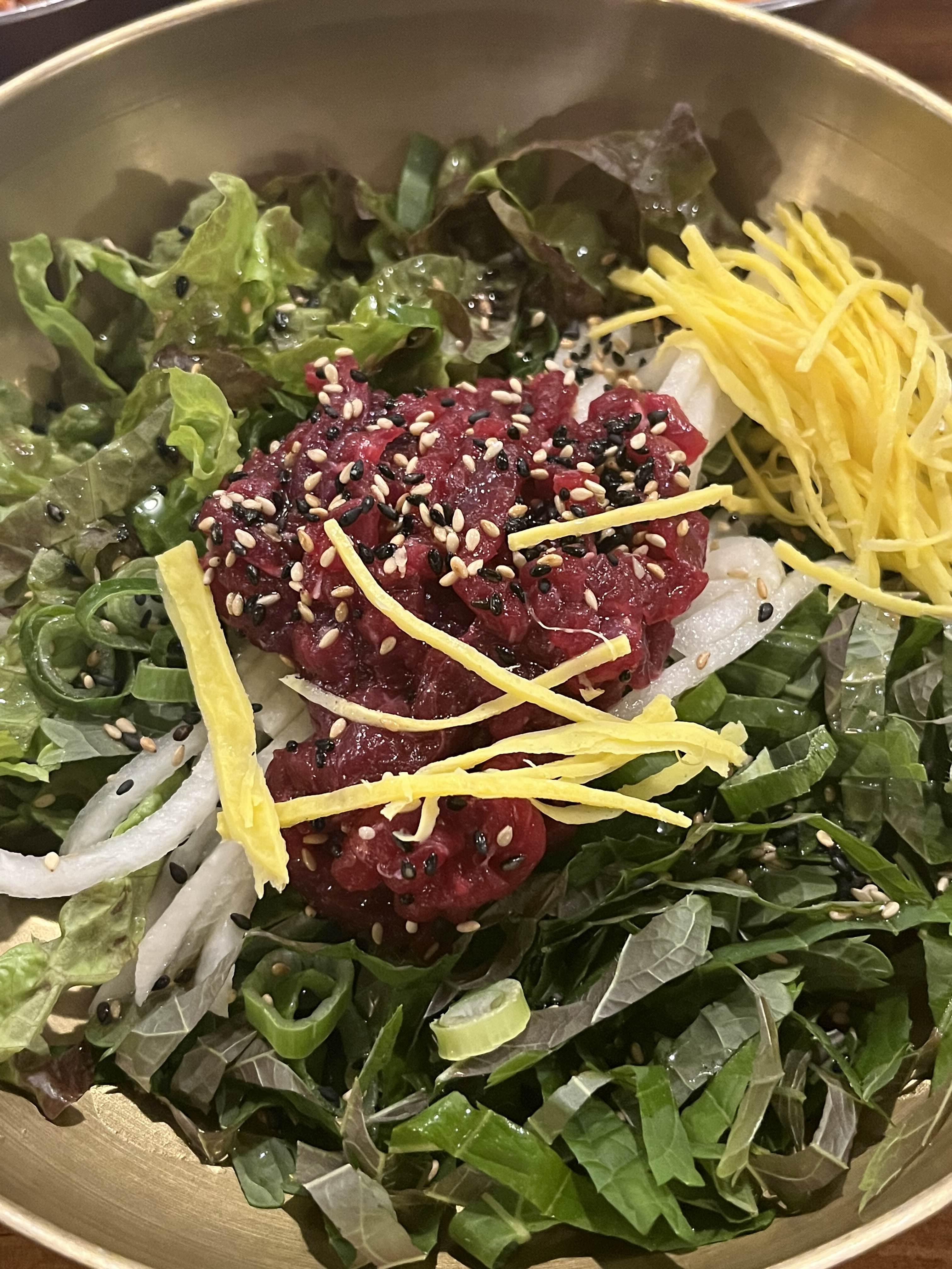 메뉴인 "육회비빔밥"인데요