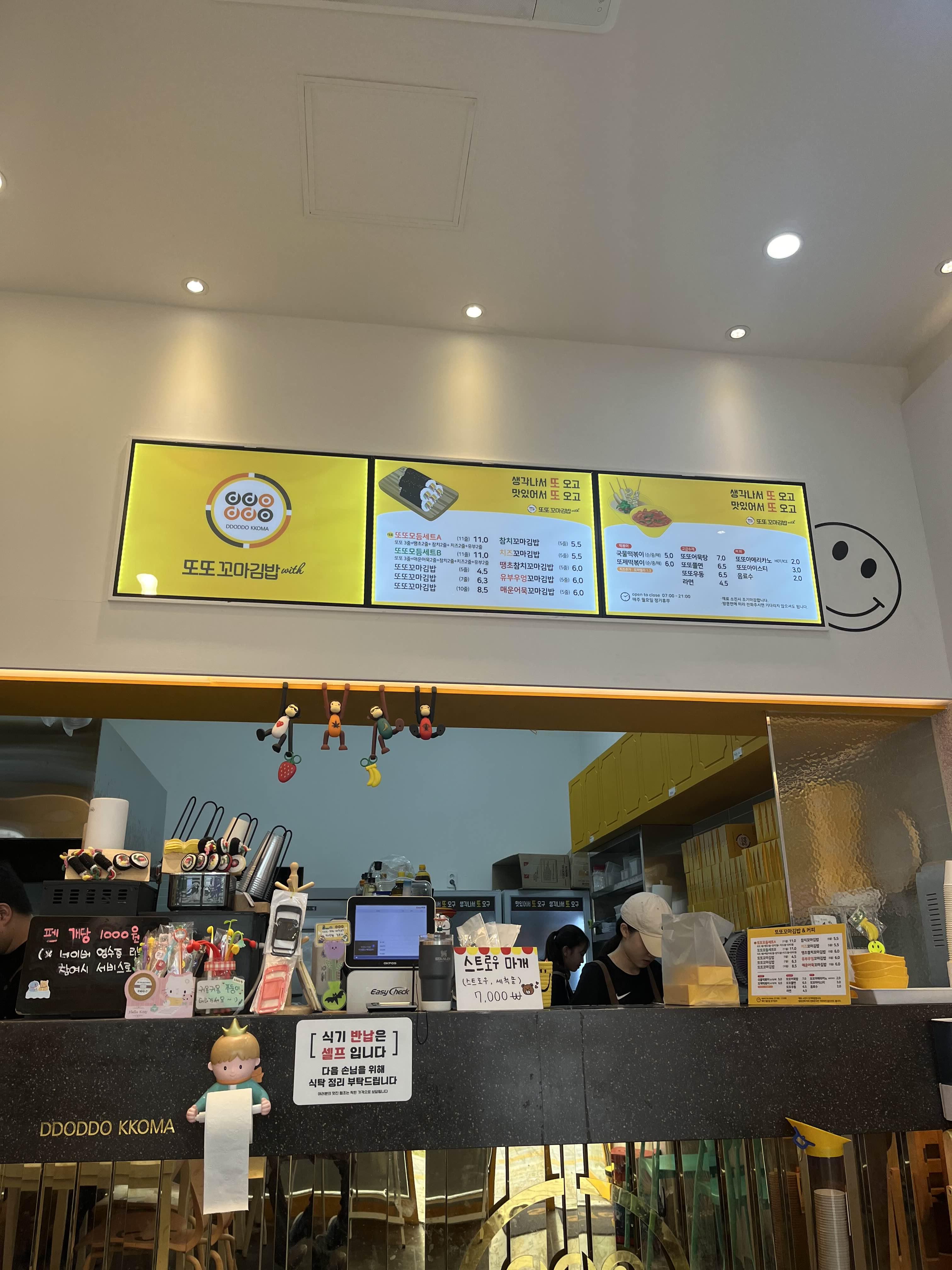 또또꼬마김밥의 메뉴는 다양해요. 기본적인 꼬마김밥 외에도 참 치, 치즈, 땡초 등 여러 가지 맛을 선택할 수 있습니다. 특히, 김밥 과 함께 먹는 라면은 국물이 진하고 맛있어서 추천해요!